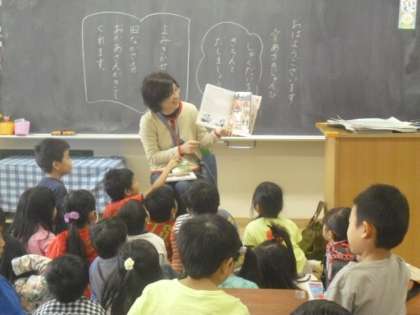 朝の読書タイムの時間に、クラスでの読み聞かせです。お母さん達の声に耳を傾け、話に引き込まれて集中して聞いていました。いつもありがとうございます。