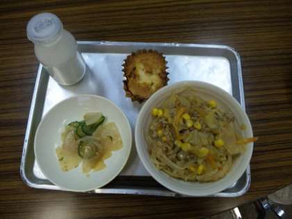 芦花小学校は民間委託「レパスト」さんの給食です。校舎改築に伴い、プレハブ棟へ引っ越しをするのでもうすぐおしまいになります。プレハブ棟ではセンター給食になります。