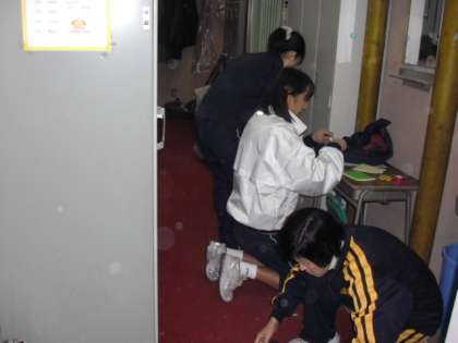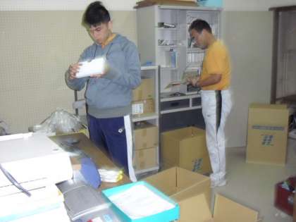 12月末のプレハブ棟への引っ越しへ向けて準備が本格的になってきました。先生たちは手分けをして荷造りできるところから始めます。まずは必要なものと廃棄するものを分けてシールを貼ります。その後で行き先別の色分けされたシールを貼ります。