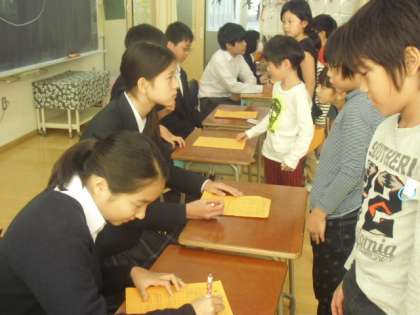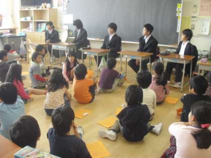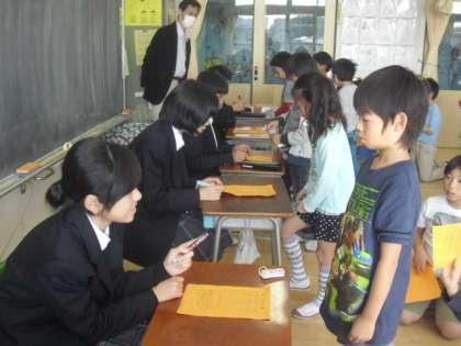 2年生の教室に中学生のお兄さん、お姉さんが登場です・・・