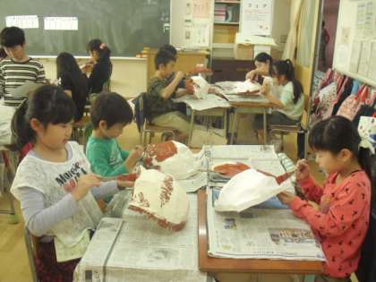 はりこのお面 3年 図工