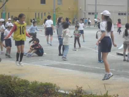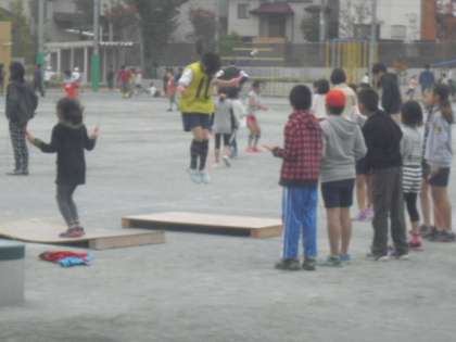 今日は朝から不安定な空模様ですが、子どもたちは元気に縄跳び検定にも挑戦しています。主事さんが作ってくれたジャンプ台を利用して、難しい技の練習にも励んでいました。