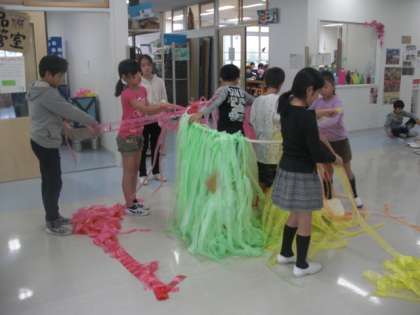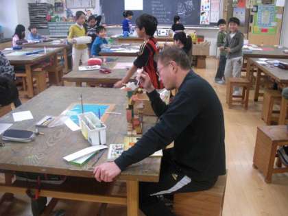 図工室内では、黙々と作品作りに取り組む子どもたちと先生。
