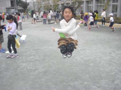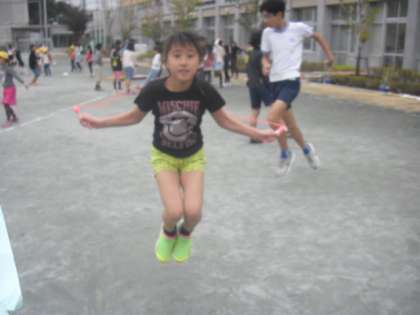 あと一息〜!!惜しいところで縄に引っ掛かってし合う児童もいましたが、あきらめずに何度もチャレンジして、クリアできた時の気持ちよさを味わってほしいと思っています。