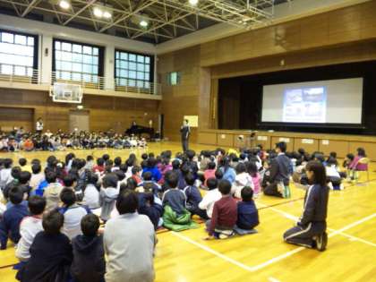今日は校内の校舎お別れ会でした。1期卒業生の松田さん2期の慶野さん18期の與倉さんをお招きしての会です。途中で芦花中の後田先生にも飛び入りでお話を伺いました。後田先生も芦花小学校の卒業生です。