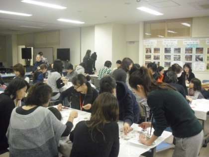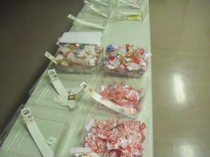 ベルマーク週間にご協力いただき集めたベルマークを仕分けする作業を会議室で行っていました。