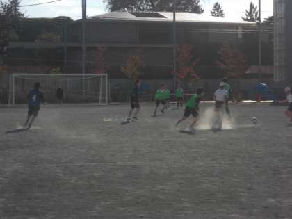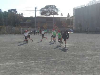 体育「サッカー」で、6年生が中学3年生といっしょに