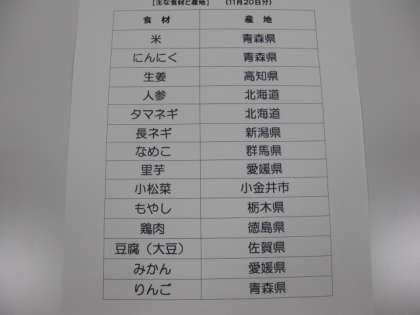 11月20日の給食