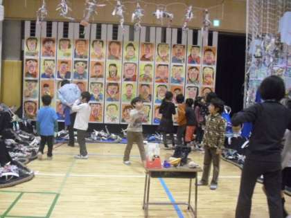 体育館への作品の搬入もほぼ終わり、会場がにぎやかになってきました。