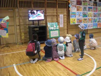会場に入って、自分たちのお兄さん、お姉さんになる人たちの作品を