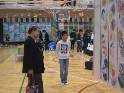 展覧会、各学年の作品の見所を6年生が”ミニ学芸員”になって