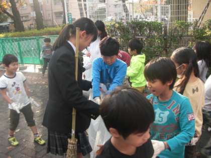 お兄さん、お姉さんが持ってくれている大きなゴミ袋に
