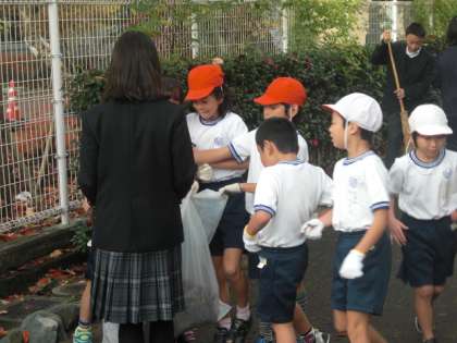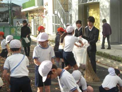 落ち葉を入れるたびに、お兄さんやお姉さんに話しかけ、