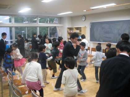 お題が言われるたびに、小学生、中学生が入り乱れて席取りをします。