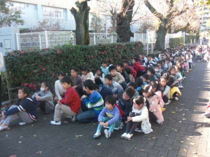 校庭への避難が慣れている子どもたちも、北門側となると
