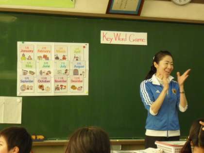 今日は6年生の英語の授業を2年生の先生がT1、6年生の先生がT2で行いました。今日は「Key Word Game」でした。キーワードになる言葉が出てきたらすばやく2人の間にあるものをとるというゲームです。6年生もいつもと違う先生に新鮮な思いを抱きながらゲームを楽しんでいるようでした。