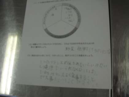 最後に献立から食品のバランスを考えてワークシートにまとめです。