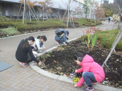 芦花の花の小路で、委員会の児童が花の手入れをしてくれていました。