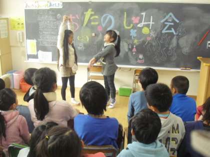 3年生の教室でも、グループごとに準備した出し物やゲームが行われていました。いつもの授業場面とはまた違った子どもたちの一面が表れていました。