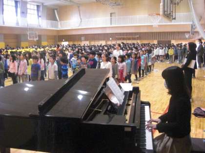 音楽専科、小川先生の伴奏と子どもたちのきれいな声が