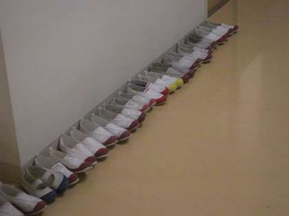 保健室前の廊下には、写真のように、上履きが見事に並んでいました。