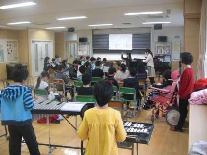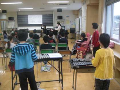 今日は、さくらさん。4年生の音楽の授業に参加しました。