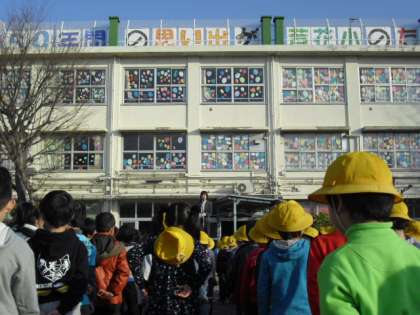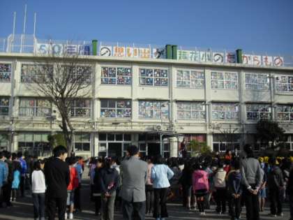いよいよ2学期の最終日となりました。芦花小学校は、改築工事中により体育館がないため校庭で行いました。