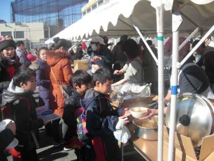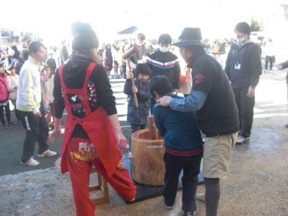 毎年、子どもたちが楽しみにしている餅つき、カレーライスや豚汁、