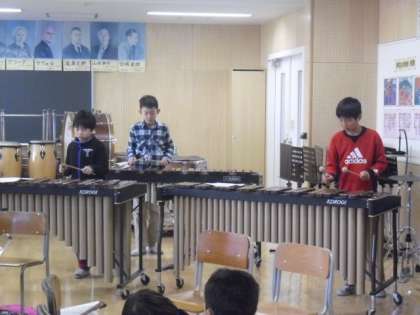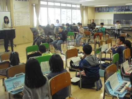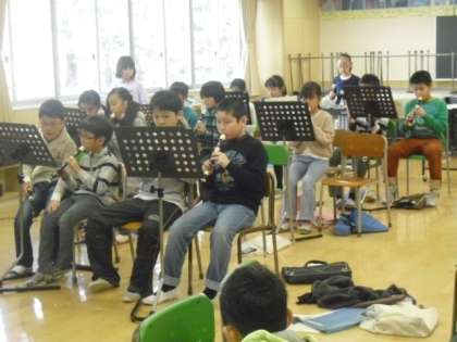 4年生もそれぞれのパート演奏を合わせて一つの合奏にしていく練習をしていました。