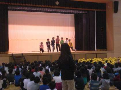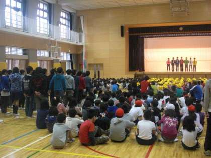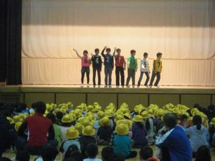 と大きく呼びかけ、6年生もいっしょに声を出してくれました。