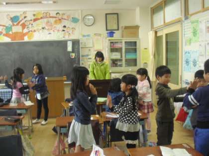 1年生の教室から、茶摘みの歌が聞こえてきました。