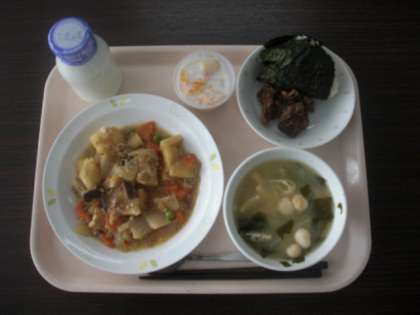 今日は、おにぎりと大人が懐かしがる鯨の竜田揚げを