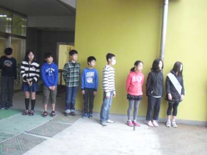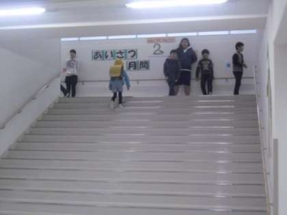 昇降口や正門、階段で、今日も6年生のあいさつ隊が元気に声をかけてくれています。
