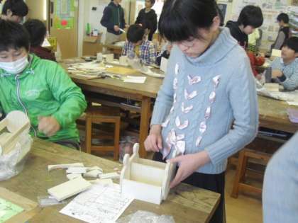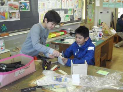 友だちと協力しながら、自分の入れ物の完成をめざします。