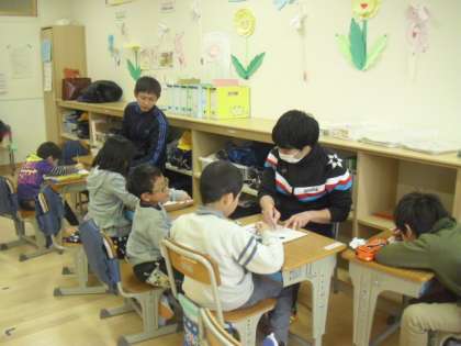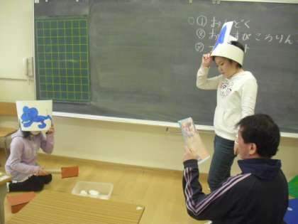 新しい感じを学び、様々な文の中で活用するグループ、本文に合わせて登場人物になり動きながらお話を理解するグループ、個別の課題に合わせひらがな、かたかな、漢字を学ぶグループ・・・・