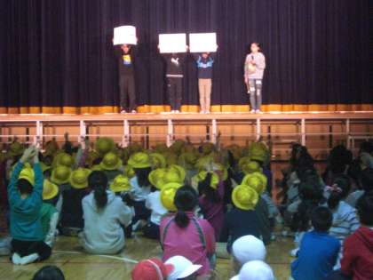 これも、役者である集会委員会の面々と、観客であるその他の在校生の