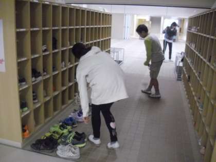 きょうも一つ一つの靴箱から靴を出し、砂をはいてくれました。