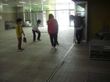 昇降口もきれいに掃いて・・・、