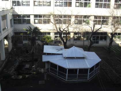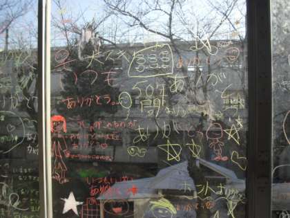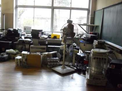 もう二度と見ることのできない校舎からのホワイトハウスの様子です。窓には低学年の子が一生懸命書いた感謝の文字が並んでいます。校舎内がとてもきれいなので、廃棄物を並べている部屋もとてもきれいに整頓されて置いてあります。引っ越し業者さんのおかげです。気持ちは伝わるものだと改めて思います。