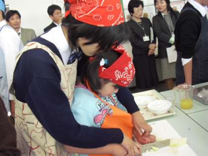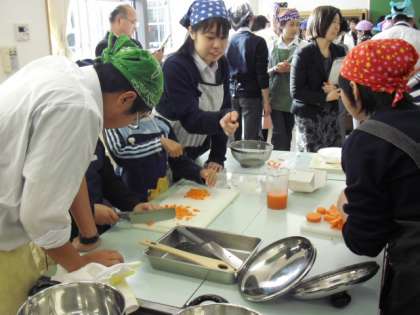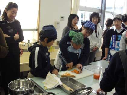 中学生は、包丁を使うのも小学生にやらせます。大人だと自分でやった方が早いかななどとも考えてしまいそうですが、中学生はじっくりと取り組みやらせます。中学生の真剣なまなざしをお見せしたいくらいです。