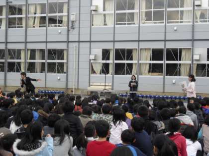 もう一つの話はあいさつ週間についてです。2人の先生があいさつピッカリカードのもらい方を劇で分かりやすく演じてくれました。ピッカリカードは校長室と職員室の前の壁に貼りだすことになっています。たくさん集めてくださいね!