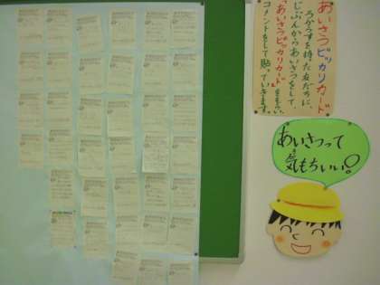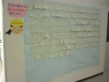 などとたくさんの言葉が並んでいます。まだ貼っていない人は早くもらって気持ちを書いてみましょう。
