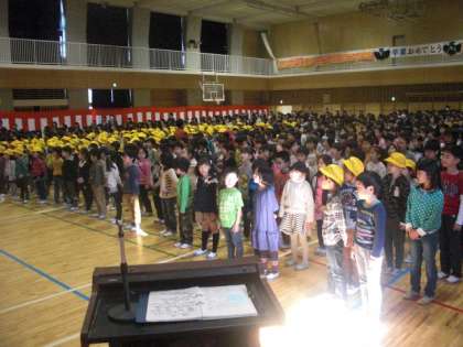 それぞれを、マイクがなしでも体育館中に聞こえる声の大きさで