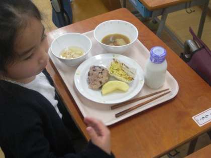 食べやすいようにお赤飯はおにぎりにしてもらいました。