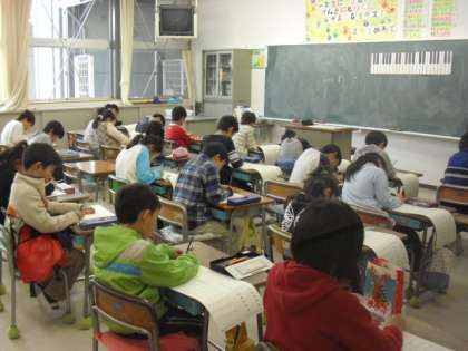 今日は漢字検定の日でもあります。真剣な様子に廊下から撮影させていただきました。今日は、5クラスを使っての検定です。大人の方も挑戦しています。