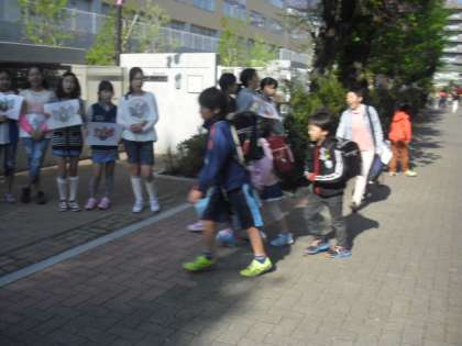 朝、6年生が校門で地域の方々と一緒にあいさつの声かけをしてくれました。