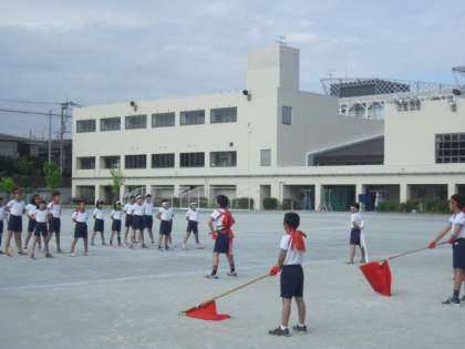運動会に向けて、朝から応援団の練習が始まりましたよ。
