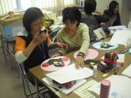 PTAの委員の方々が、PTAの作業の合間に、
