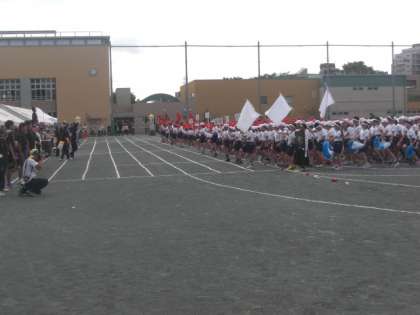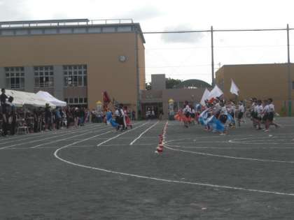 運動会、応援団の入場に続いて、1年生から6年生までが