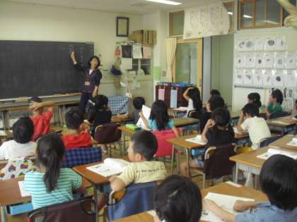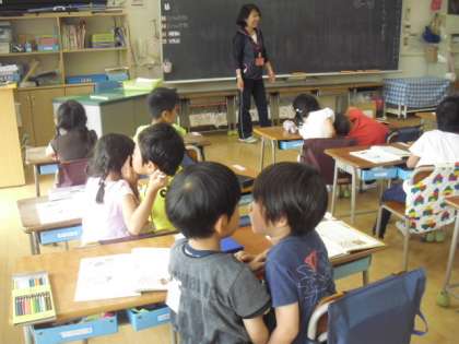 お隣さんと相談して、変身させた言葉を元気に発表していました。